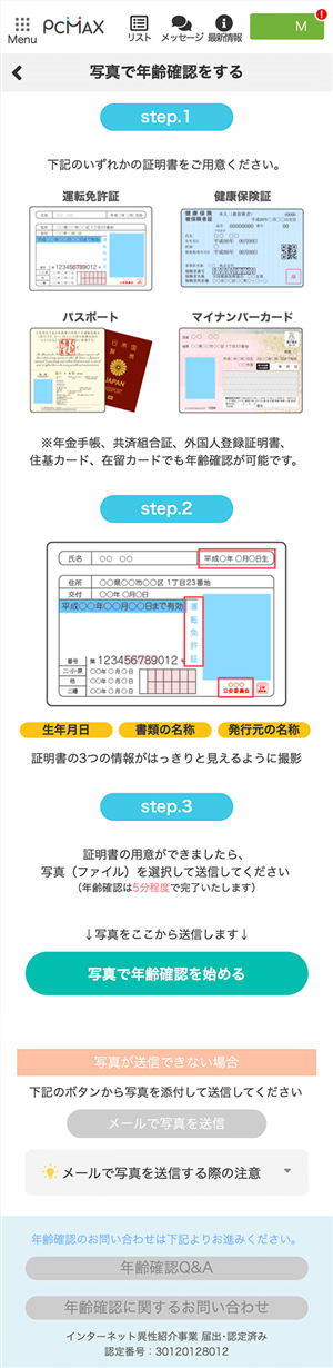 また、年齢確認は18才以上の男女のみしか会員にさせることができないからこそ、行っていますよ。
